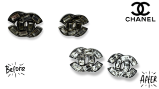 アクセサリー修理加工例 黒ずんだCHANELピアス!他社で断られた接着留めにも対応!新品同様に修理!