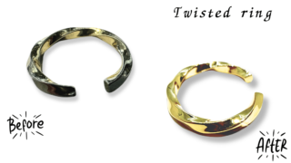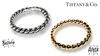 アクセサリー修理加工例 ティファニー「ナローツイストリング」これで黒くならない!ゴールドリメイク&仕上げ直し修理!