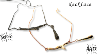 アクセサリー修理加工例 変色がひどいけど、元の色に戻せる?まっ黒変色ネックレスをK18の綺麗な色味にしたい!