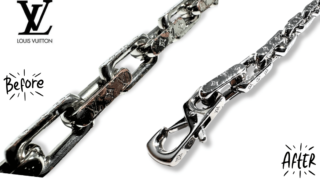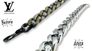 アクセサリー修理加工例 ここまで剥がれても、元の色に戻せる?【モノグラム LV チェーンリンクスブレスレット】の修理