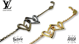 アクセサリー修理加工例 LVハートフォーリンラブブレスのメッキ剥げをオールゴールドカラー修理