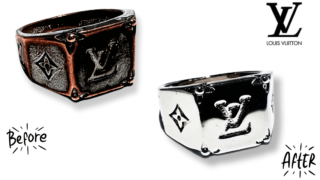 アクセサリー修理加工例 赤黒いサビ!ルイヴィトン シグネットリングの修理!メッキ剥がれと変色とくすみ