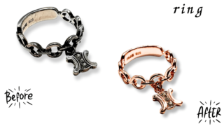 アクセサリー修理加工例 見違えるほど華やかに!サビと黒ずみの指輪リメイク(リフォーム)修理&カスタムピンクゴールドメッキ!