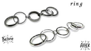 アクセサリー修理加工例 5連リング「キズやくすみの除去」「高級感のロジウム仕上げ」複雑な形状のアクセサリー修理