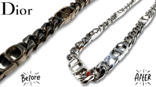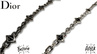 アクセサリー修理加工例 DIORチェーンネックレスをロジウムで再メッキ!黒ずみ・摩耗を一掃した新品仕上げ修理