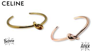 アクセサリー修理加工例 【メッキ剥げ・錆び・再メッキ】CELINE セリーヌノット エクストラシンブレスレット (ピンクゴールド)